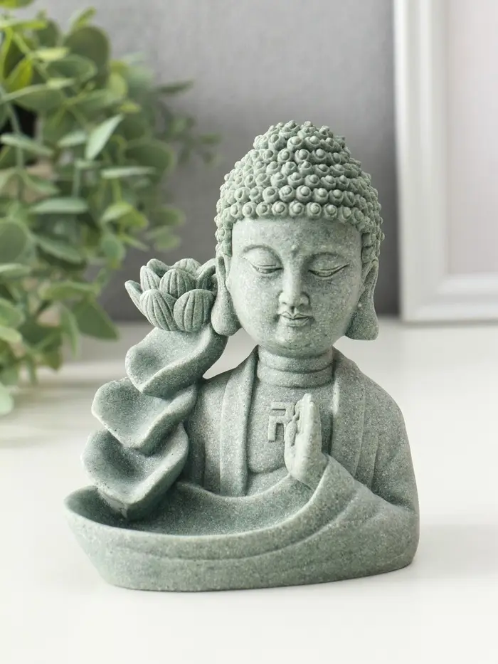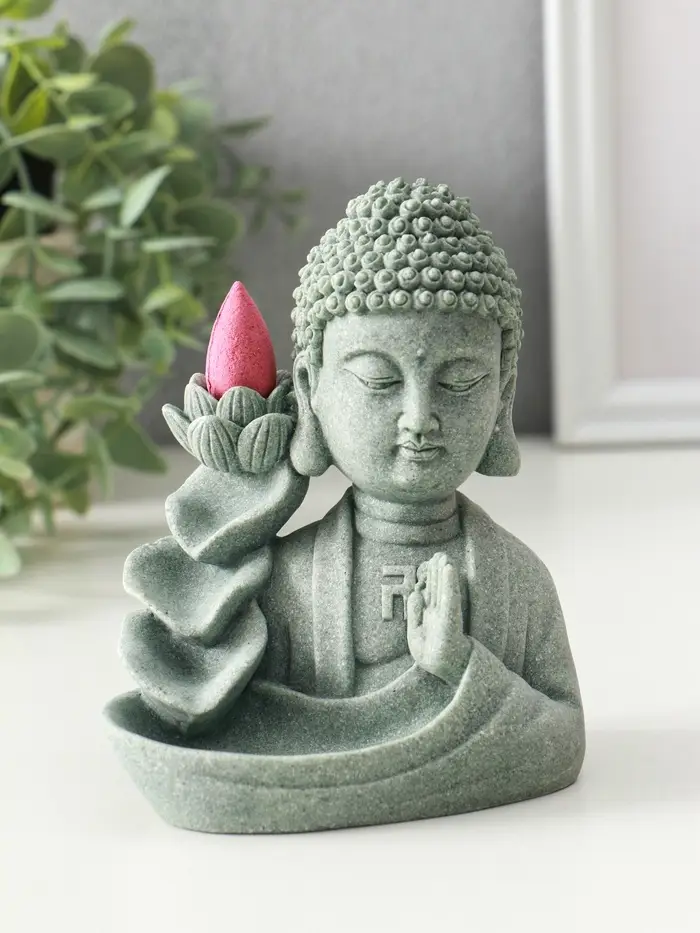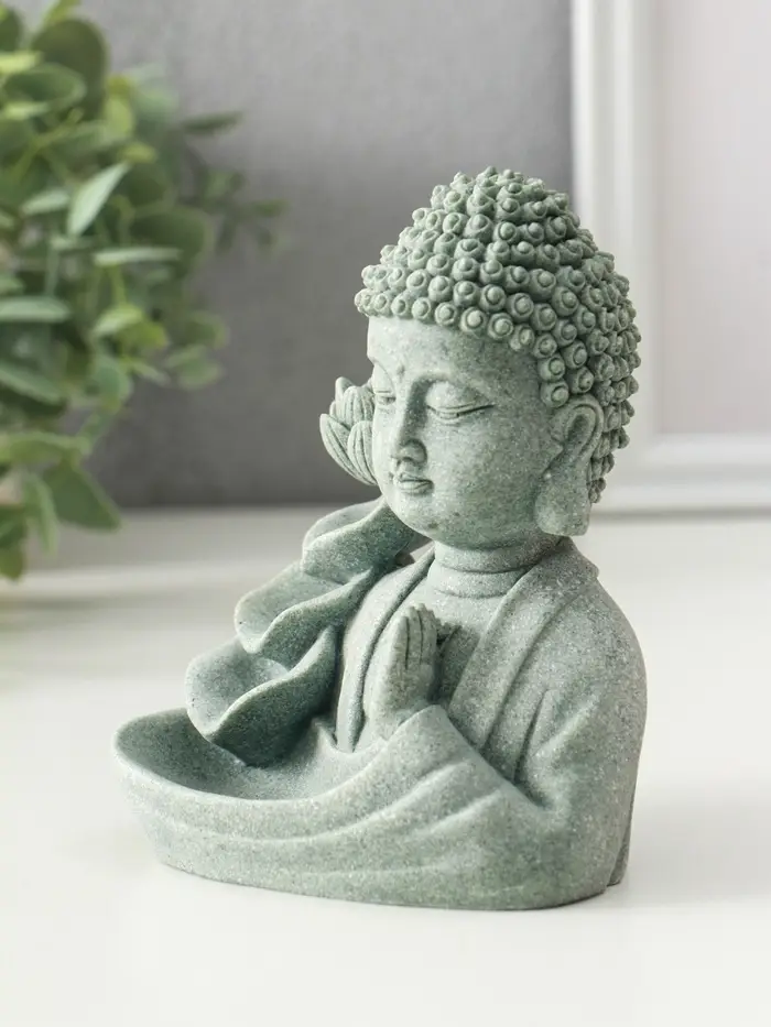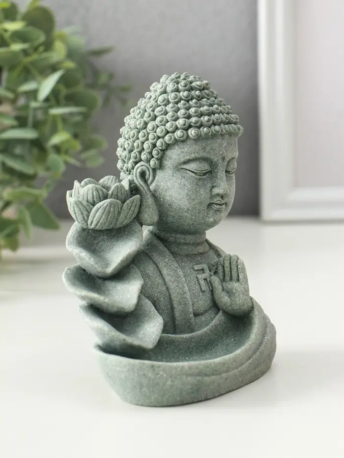 Подставка под благовония песчаник "Будда и фонтан с лотосом" 7х10,5х13 см