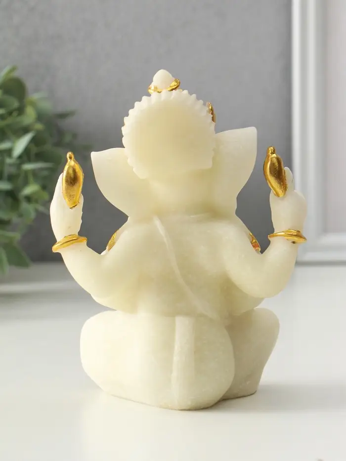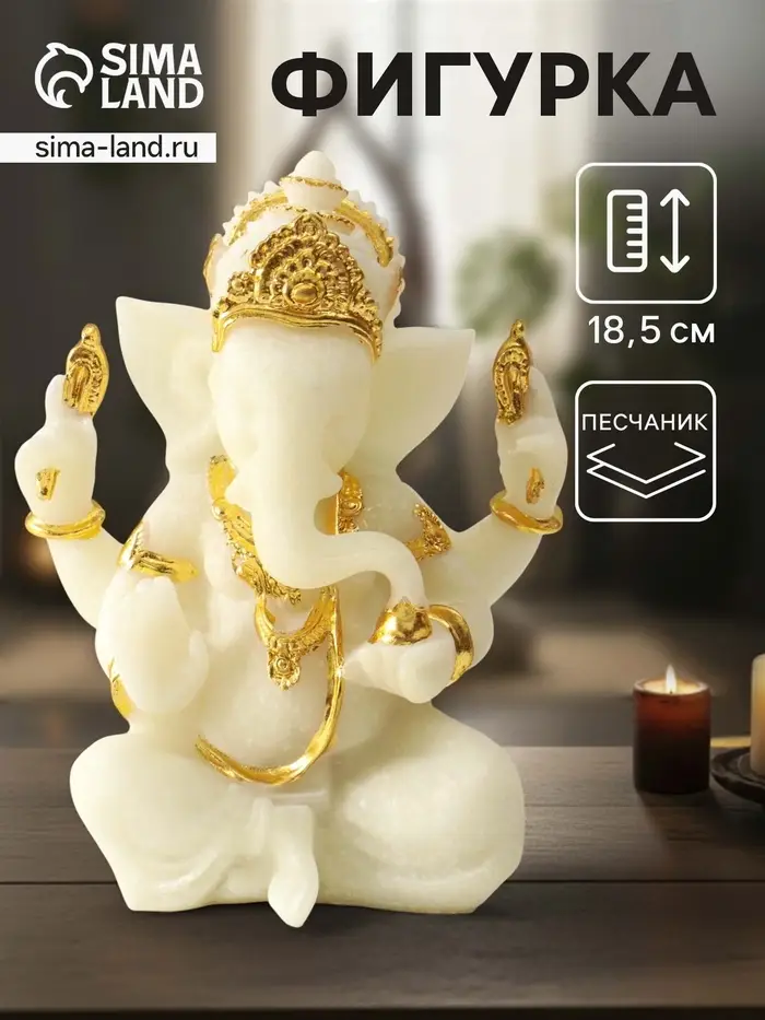 Фигурка песчаник «Ганеша - мудрость и благополучие», белый с золотом, 8×13×18.5 см