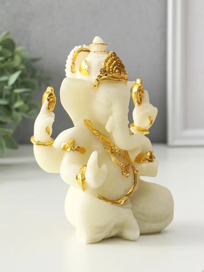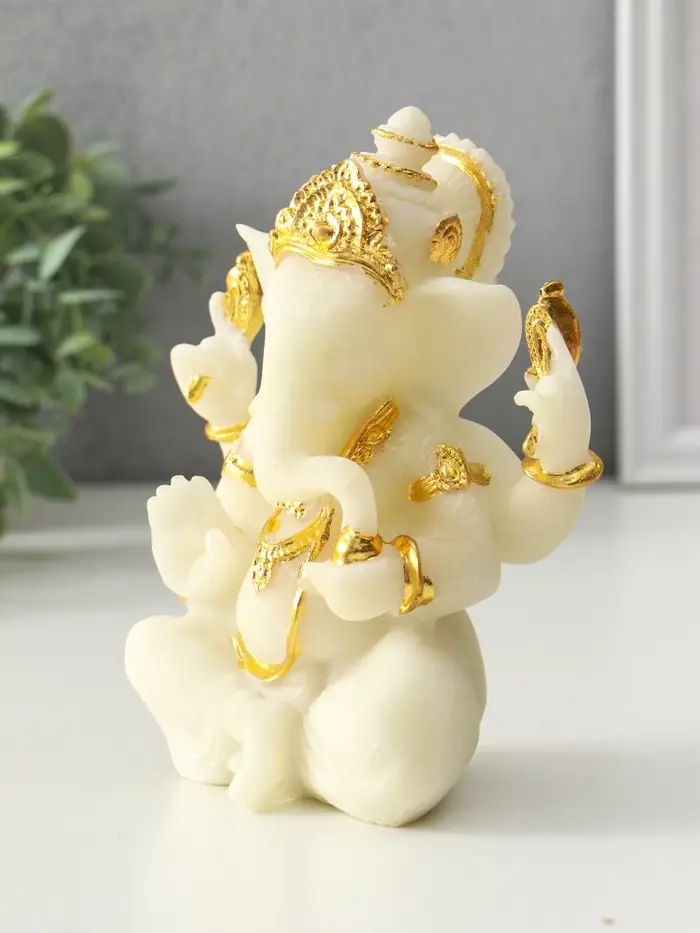 Эта статуэтка Генеша из песчаника станет особым элементом вашего пространства. Образ мудрого божества, выполненный в классическом белом цвете с позолотой, создаёт атмосферу гармонии и спокойствия. Изделие универсально — оно дополнит домашний алтарь, рабочий кабинет или станет глубоким подарком, несущим пожелание процветания.