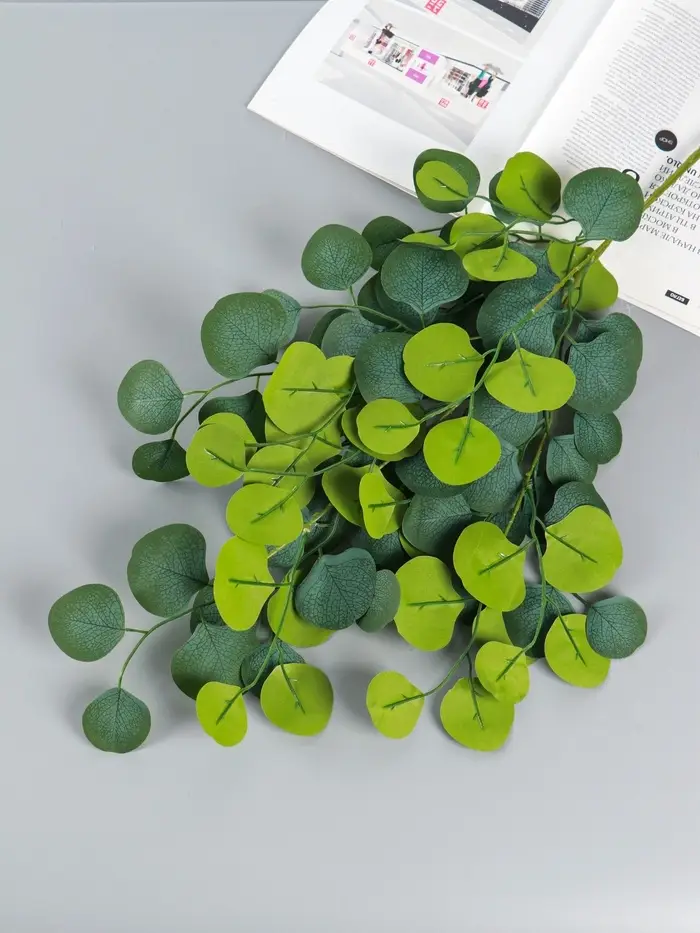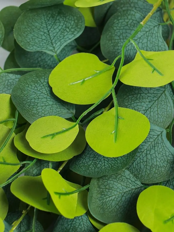 - Универсальный зеленый цвет: Классический зеленый оттенок подходит к любой палитре интерьера. Эвкалипт гармонично сочетается с другими искусственными цветами и травами, служит фоном для ярких соцветий или работает как самостоятельный декор.