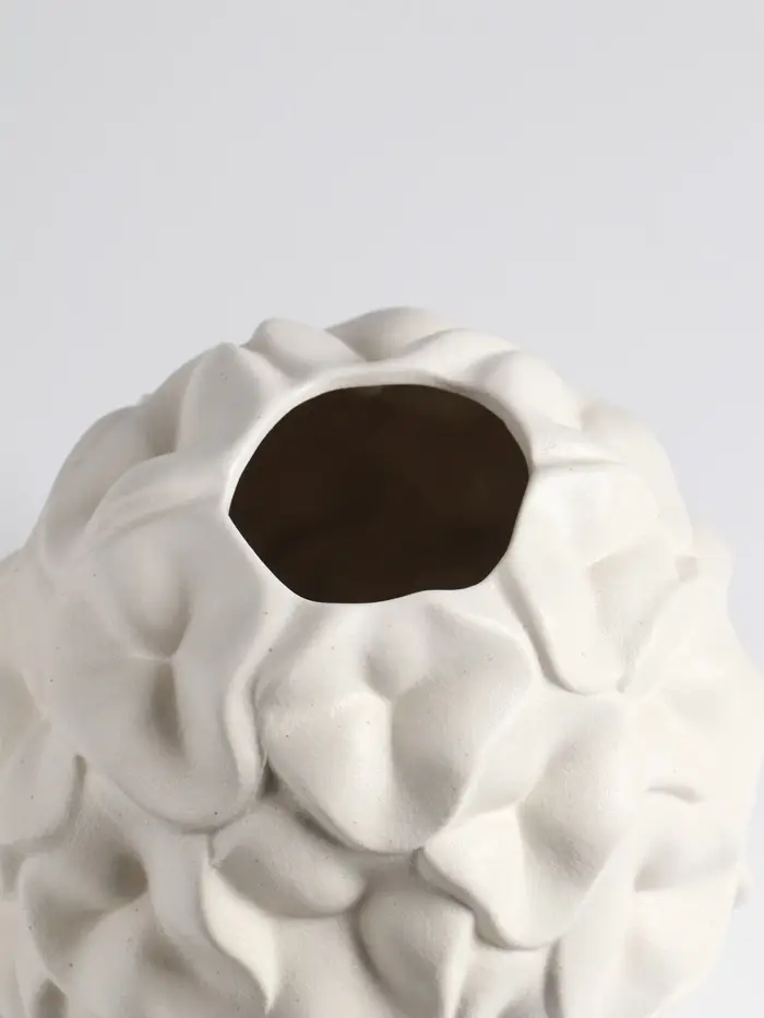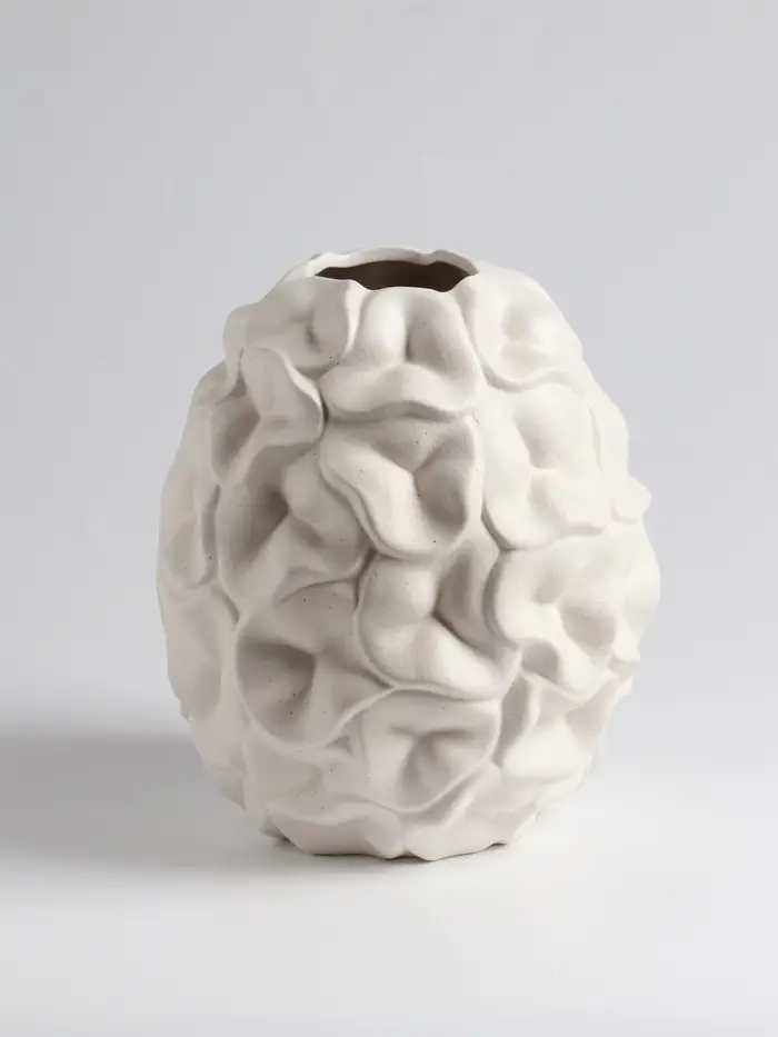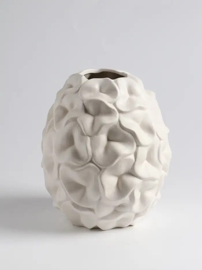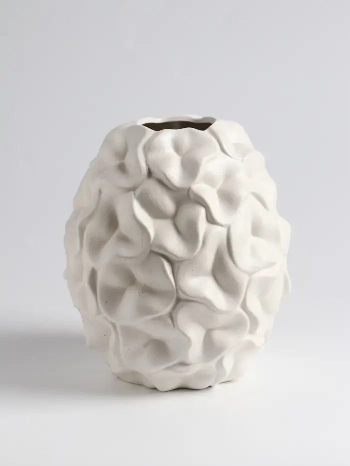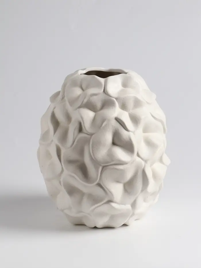 - Интересный дизайн: Ваза выполнена в белом матовом цвете и имеет необычный рельеф. Такое решение легко вписывается в любую цветовую палитру и стиль, становясь гармоничным дополнением декора.