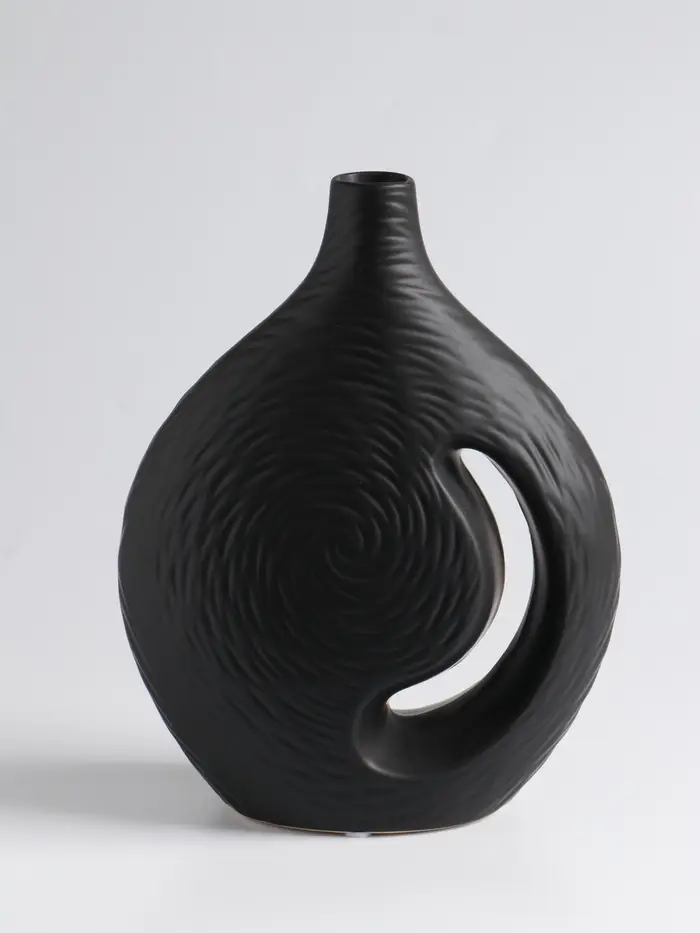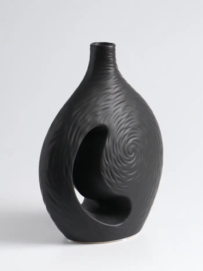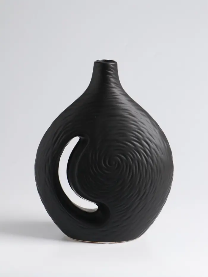 Чёрная керамика — это всегда вне времени. Ваза «Невада» — это выразительный акцент для современного интерьера. Её лаконичная форма и глубокий матовый цвет создают идеальный фон для живых или сухих композиций, добавляя пространству строгости и стиля.