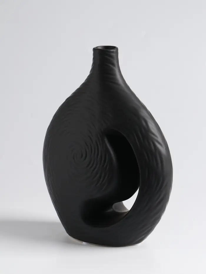 - Универсальный дизайн: Благодаря обтекаемой форме и нейтральному цвету, ваза органично впишется в скандинавский стиль, лофт или минимализм. Она становится частью обстановки, не перегружая её.
