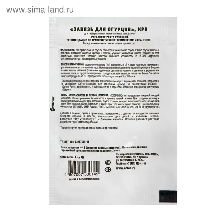 Стимулятор плодообразования "Завязь" для огурцов, 2 г