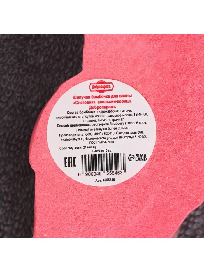 Бомбочка для ванн "Снеговик" с ароматом апельсина и корицы, 70 г