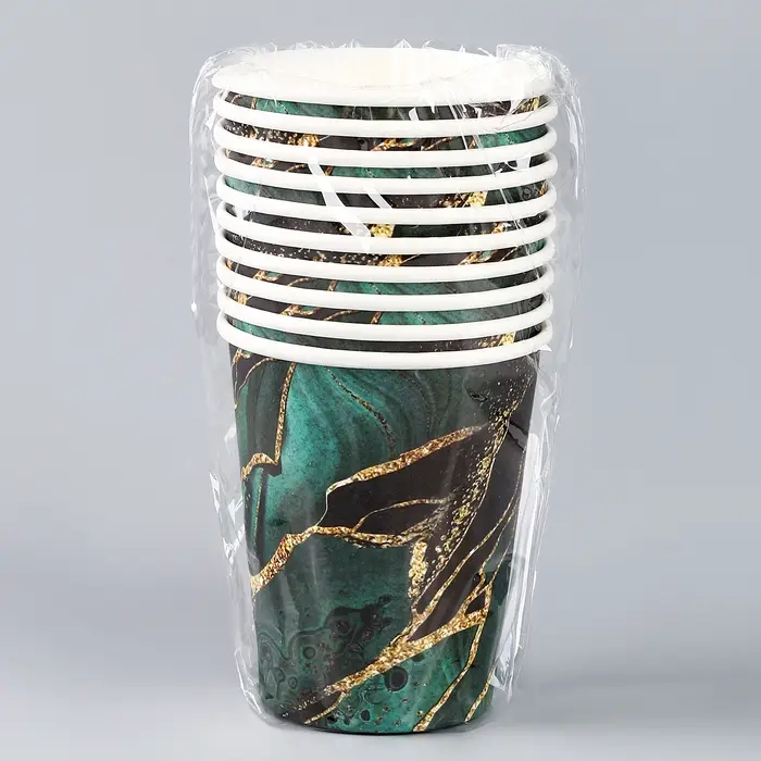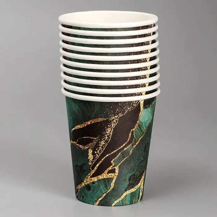 Стакан одноразовый бумажный "Мрамори",изумруд, 250 мл