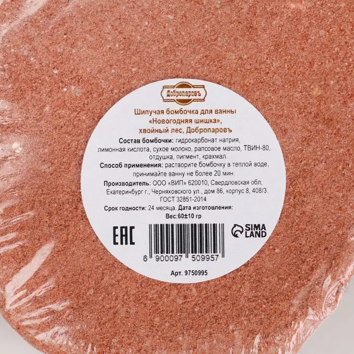 Бомбочка для ванн "Новогодняя шишка" аромат хвойного леса, 50 г