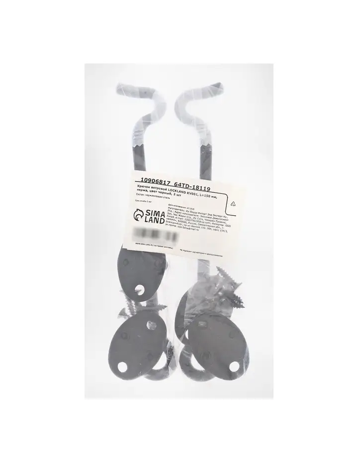 Крючок ветровой LOCKLAND KV001, L=150 мм, нержа, цвет черный, 2 шт