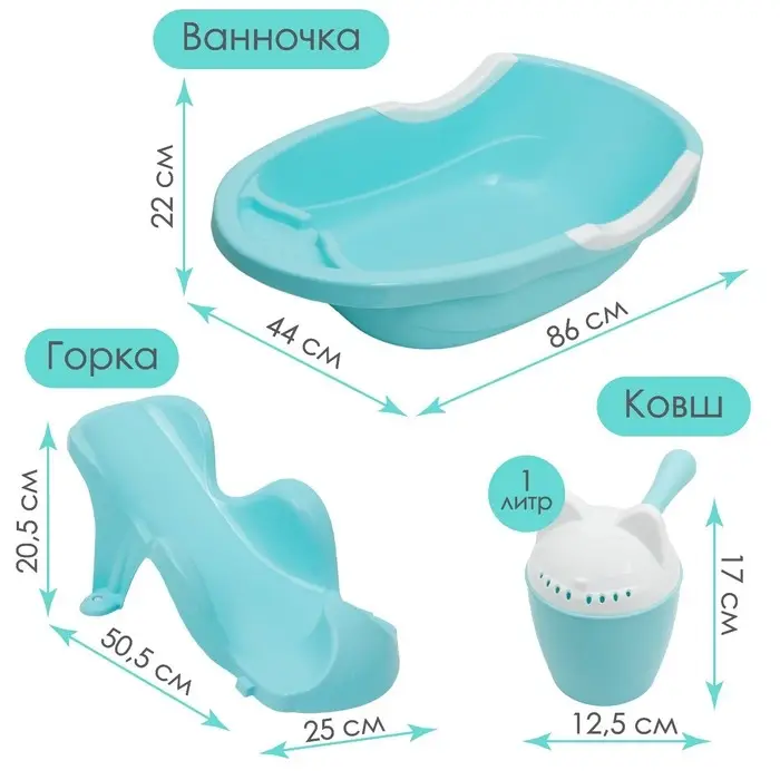 Набор для купания детский: ванночка 86 см, горка, ковш -лейка, голубой