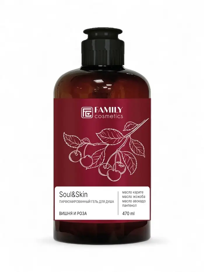 Гель для душа парфюмированный Soul&Skin вишня и роза, 470 мл