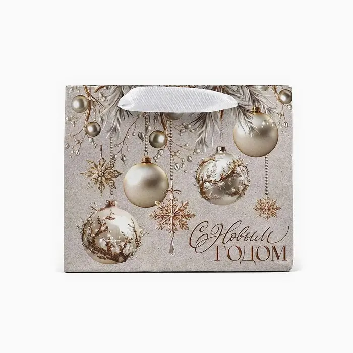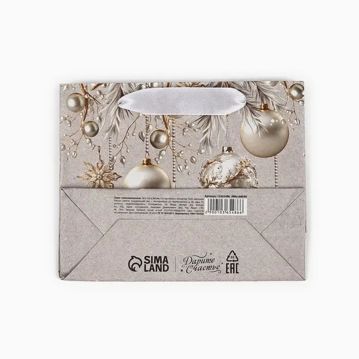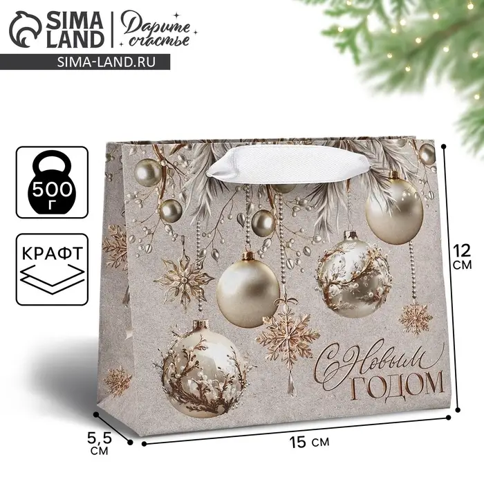 Пакет подарочный новогодний крафтовый «С Новым годом», шары, S 15 х 12 х 5.5 см