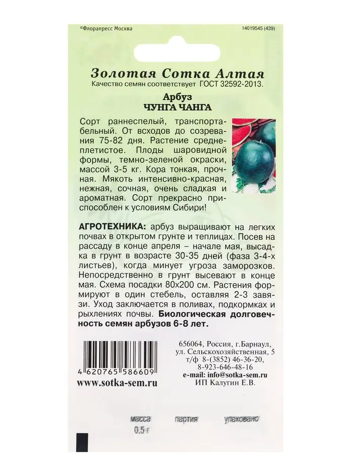 Семена Арбуз Чунга Чанга /Сотка/ 0,5г/ раннесп. 3-5кг/*900