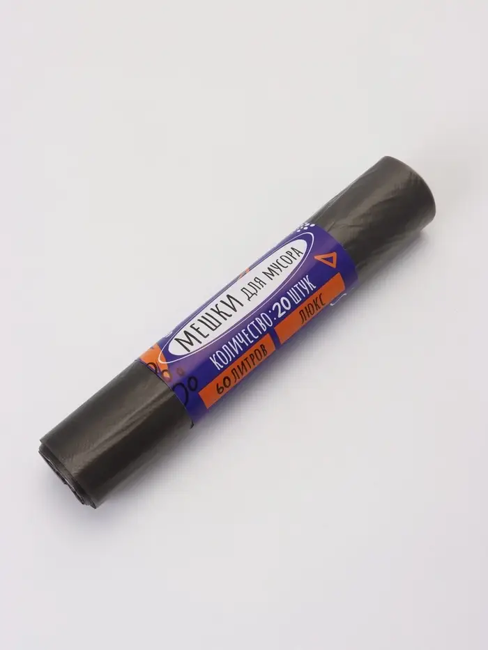 Мешки для мусора 60 л, ПНД, толщина 20 мкм, 20 шт в рулоне, цвет черный