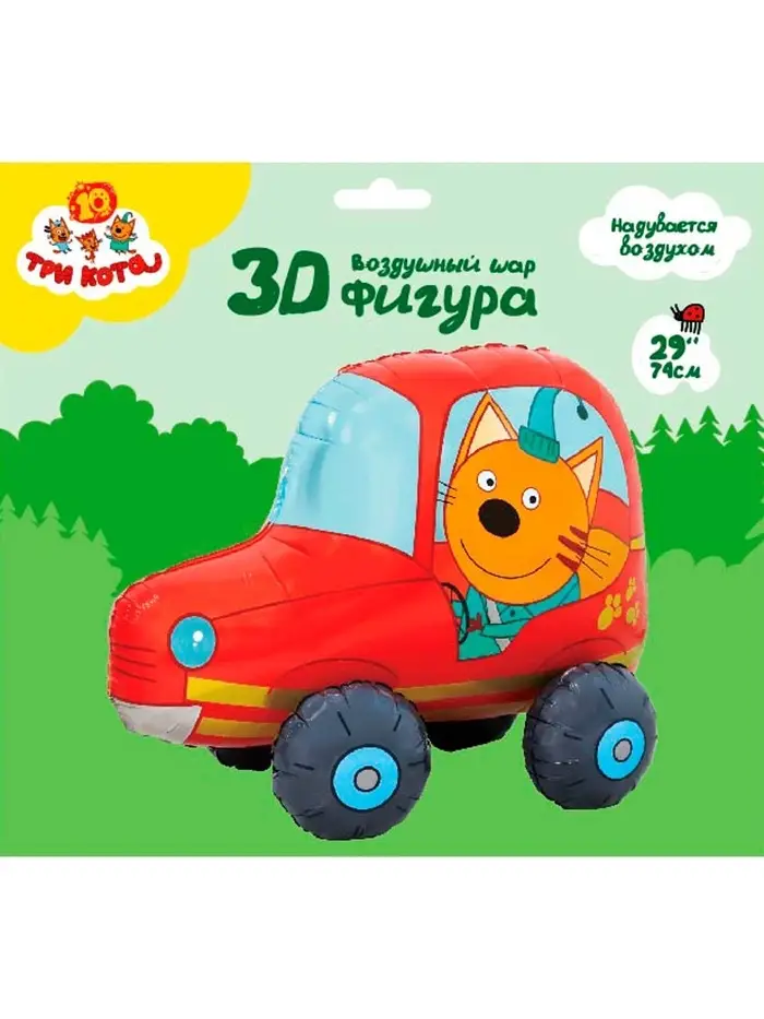 Воздушный шар фольгированный 3D 29" «Три Кота. Компот в машине»