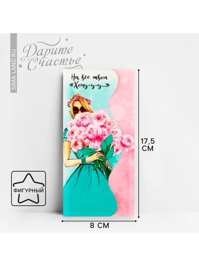 Конверт для денег «На все твои хочу» фигурный, 17.5 х 8 см
