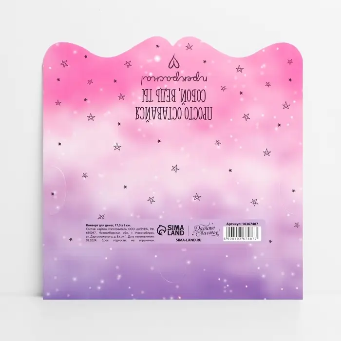 Конверт для денег фигурный «Просто оставайся собой», 17.5 х 8 см