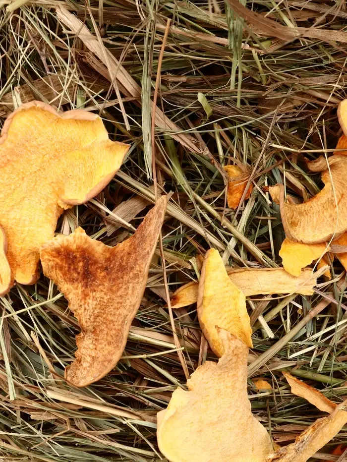 Сено с тыквой — вкусно, полезно и увлекательно! Луговое сено с тыквой «Зверьё Моё» — это отборная зелёная трава, обогащённая кусочками сушеной тыквы. Подходит для шиншилл, морских свинок, кроликов и других травоядных как ежедневный корм, подстилка и источник естественного поведения: жевания, копания и поиска лакомств.