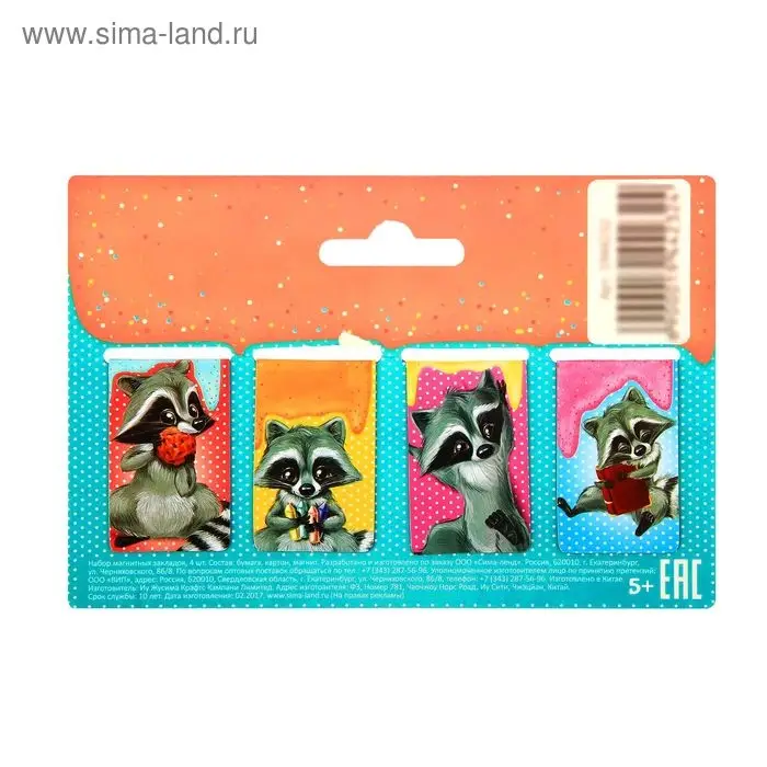Закладки магнитные для книг, 4 шт «Читаем вместе с енотом»