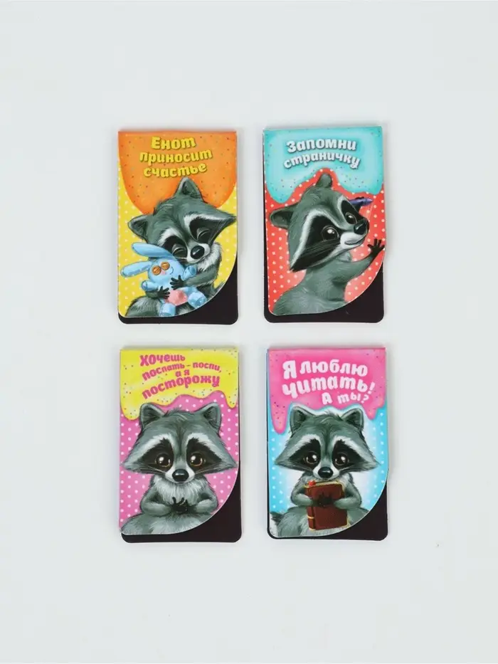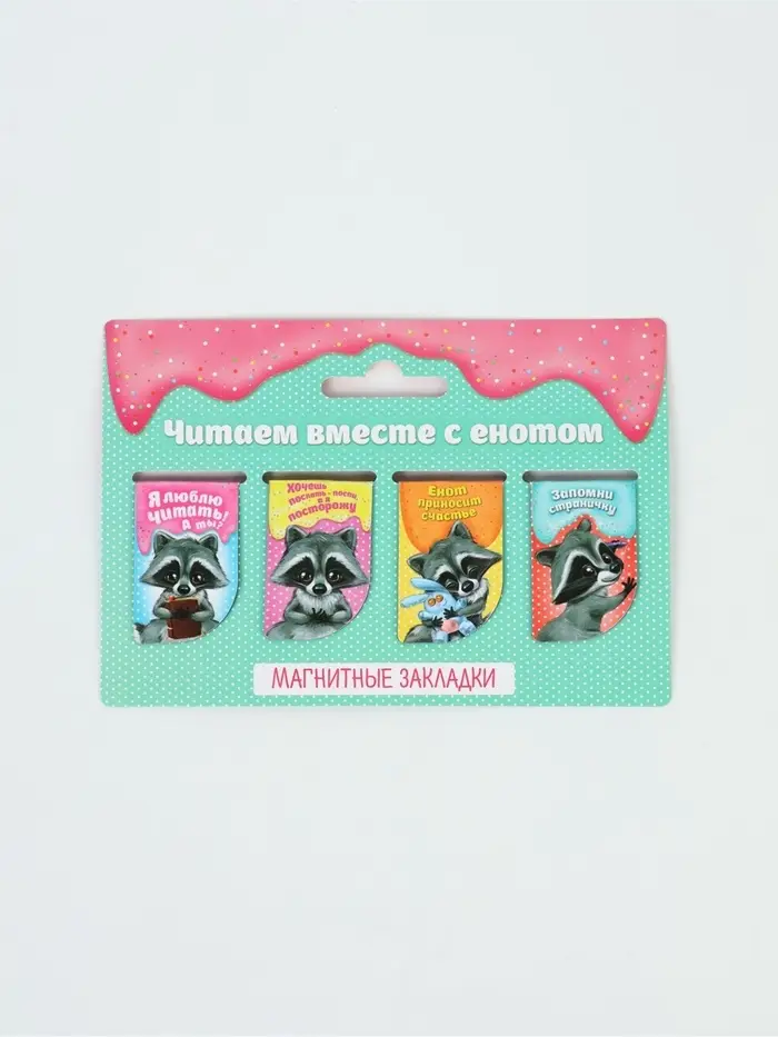 Закладки магнитные для книг, 4 шт. «Читаем вместе с енотом»