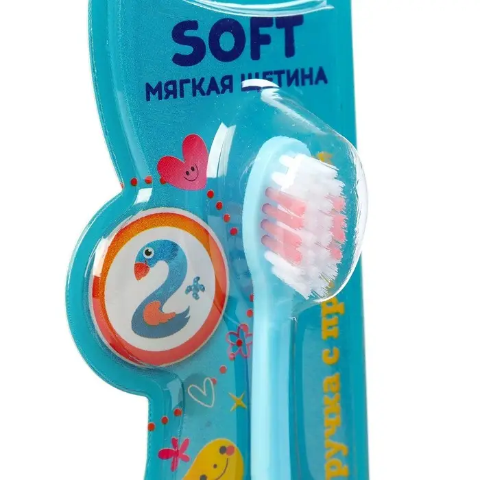 Мягкая щетина не травмирует чувствительные детские десны и не царапает эмаль молочных зубов.