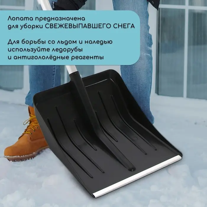 Эта лопата подойдёт для уборки свежевыпавшего снега во дворе, на дорожке, у гаража.
