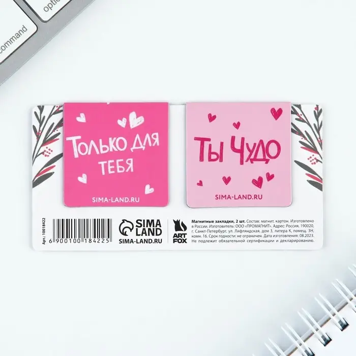 Магнитные закладки 4 шт в открытке «С 8 Марта»