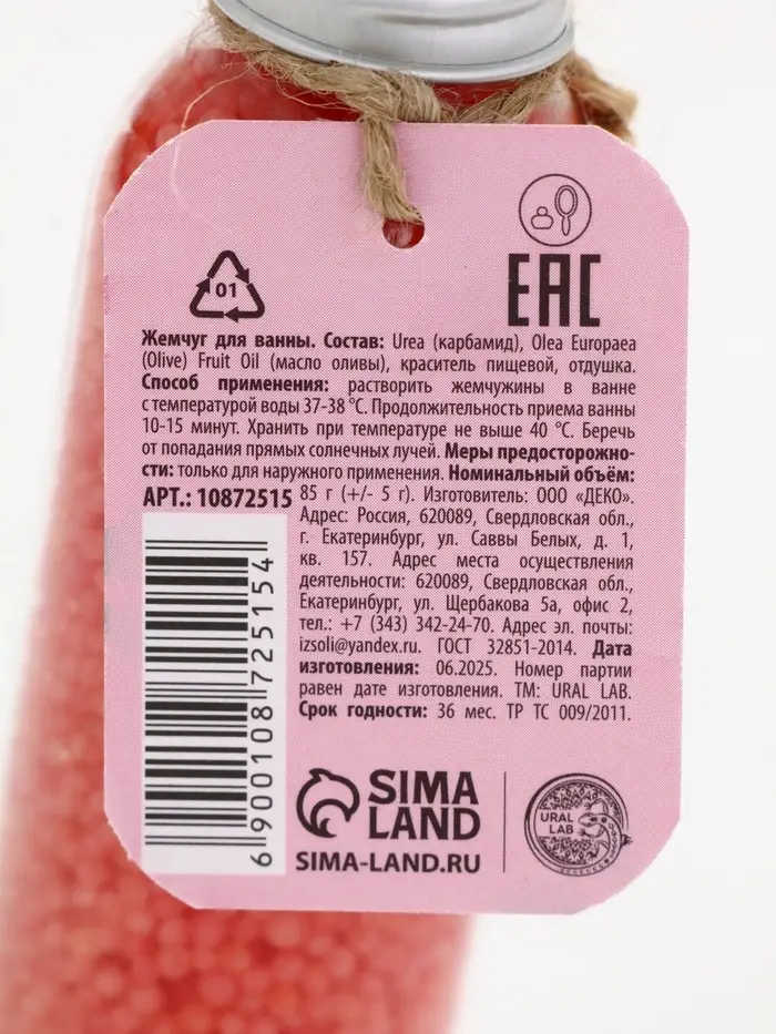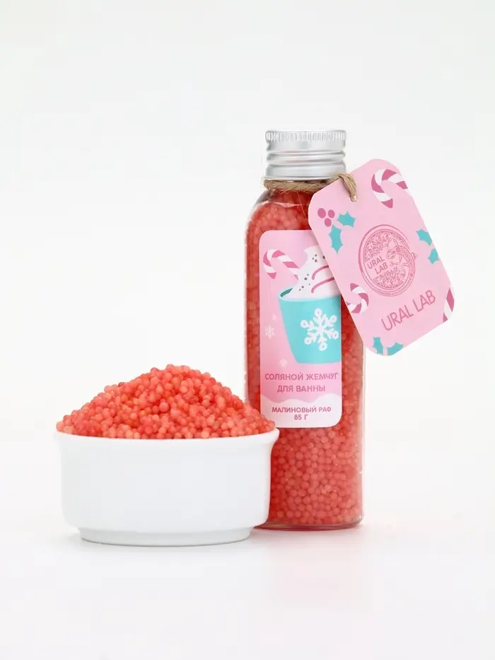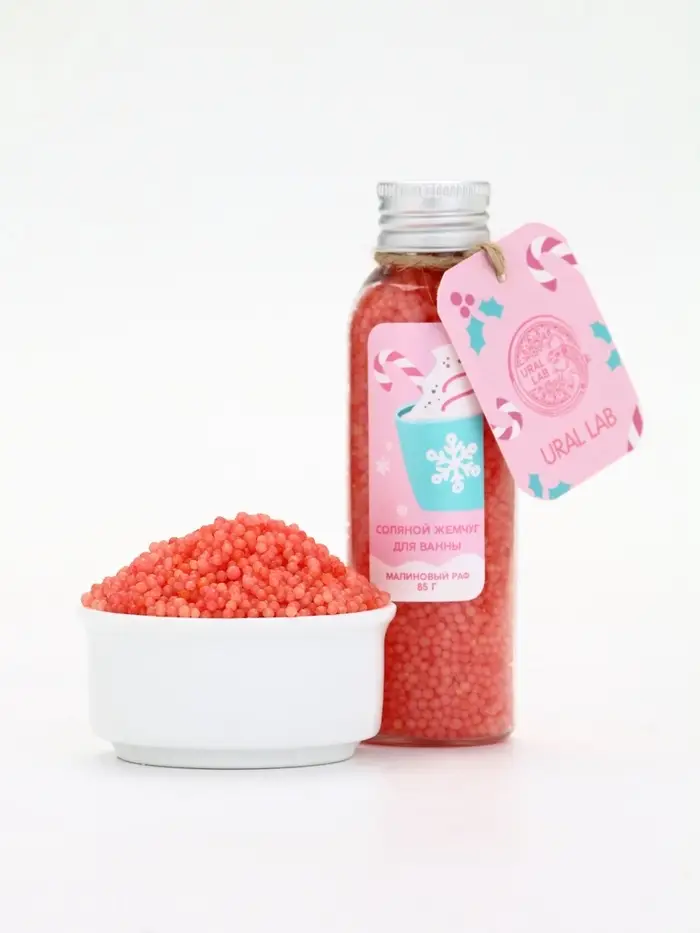 Жемчуг для ванны во флаконе, 85 гр, аромат малиновый раф, URAL LAB