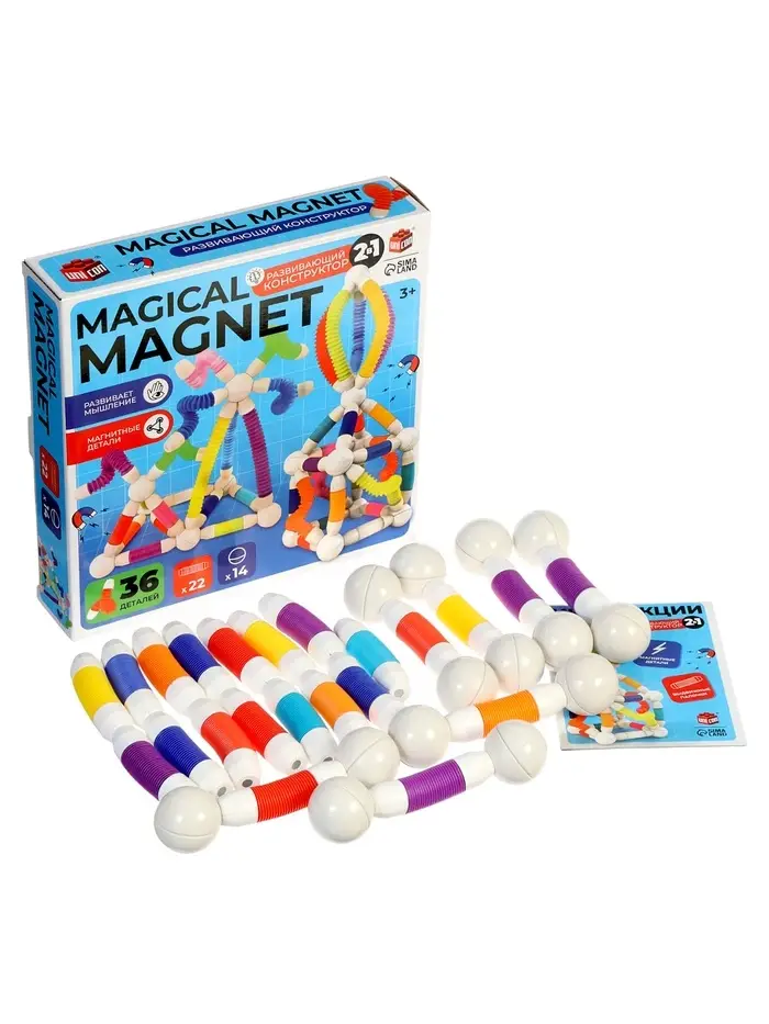 Конструктор магнитный "Развивающие трубы", 36 деталей