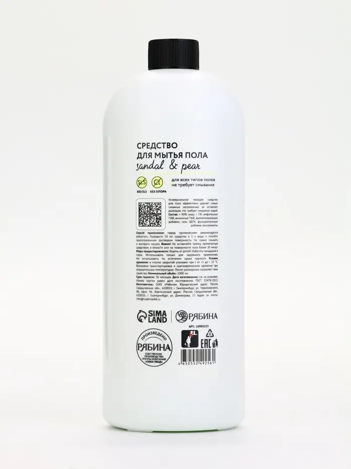 Средство для мытья пола, аромат сандал и груша, 1000 мл, ULAB