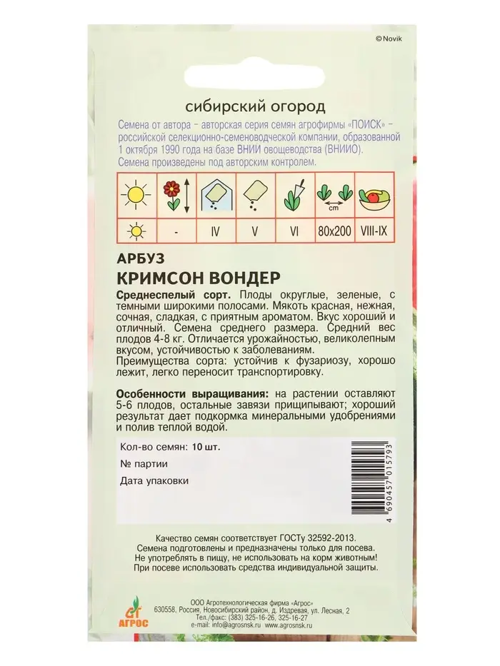 Семена Арбуз "Кримсон Вондер" 10 шт