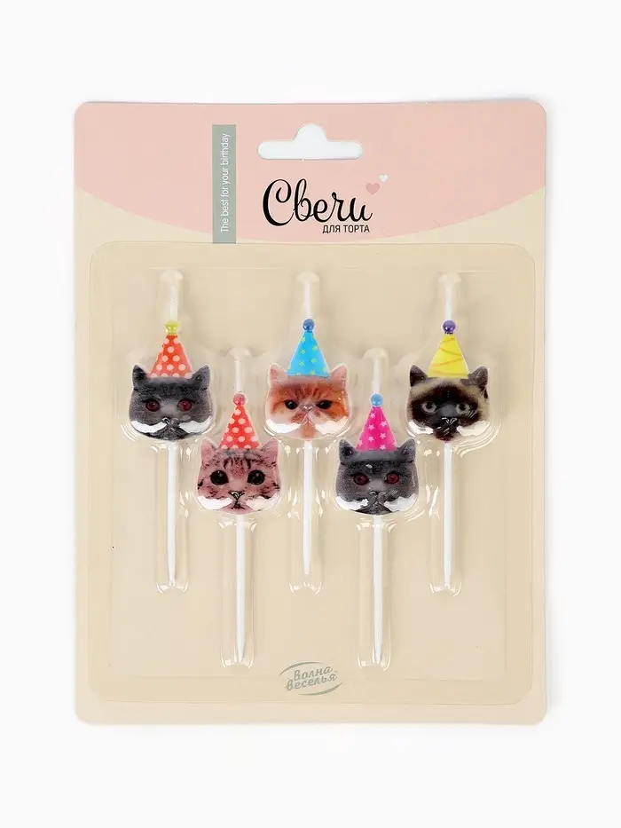 Набор свечей для торта «Котики», 6 см, 5 шт