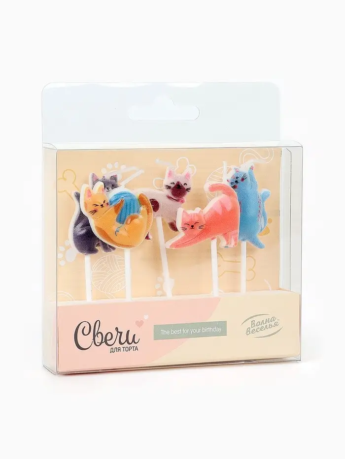 Набор свечей для торта «Милые котята», 3 х 3,5 + 4 см, 5 шт