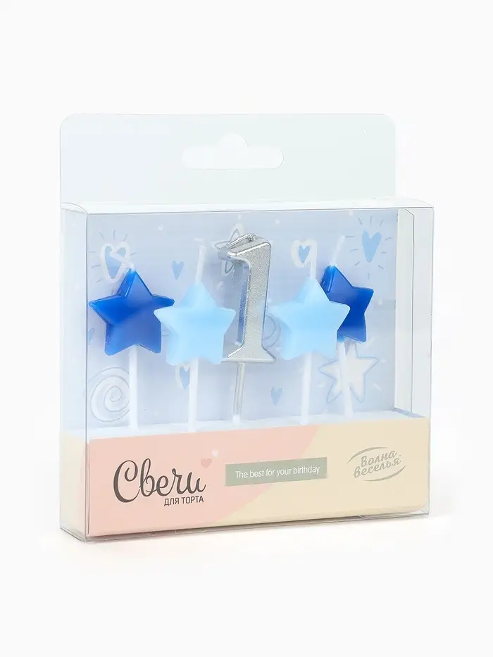 Свечи для торта «1-ый День Рождения Мальчика», серебро/голубой, 2,5 х 3,5 + 4 см, 5 шт