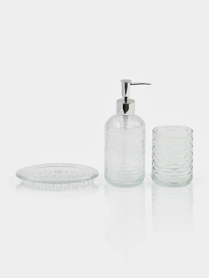 Набор для ванной "Перелив", 3 предмета (дозатор для мыла, стакан, мыльница)