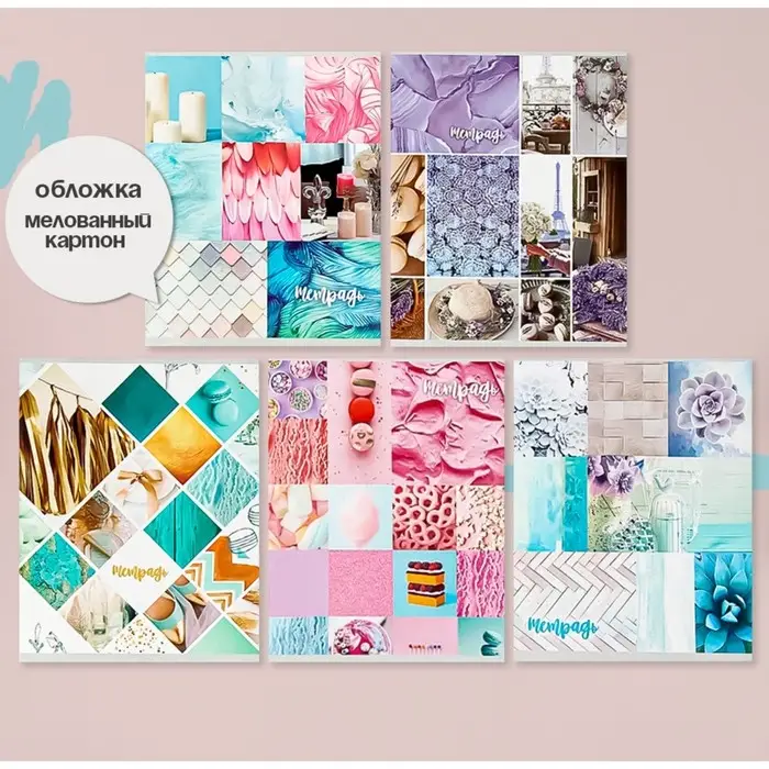 Комплект тетрадей из 5 штук, 36 листов в клетку Calligrata "Коллаж", обложка мелованный картон, блок офсет