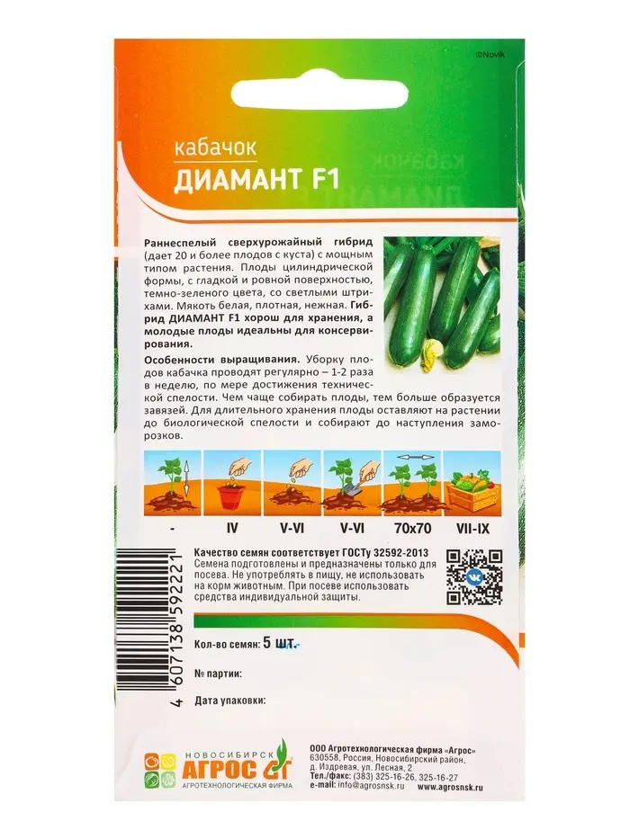 Семена Кабачок "Диамант" F1 5 шт