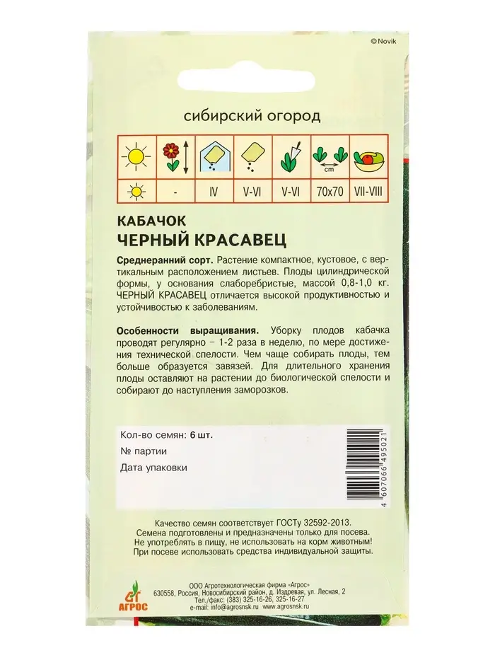 Семена Кабачок "Черный красавец" 6 шт