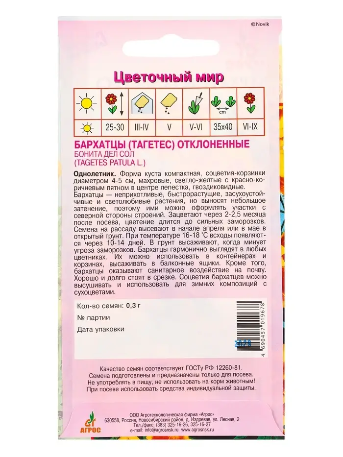 Семена Бархатцы Бонита Дел Сол 0,3 г