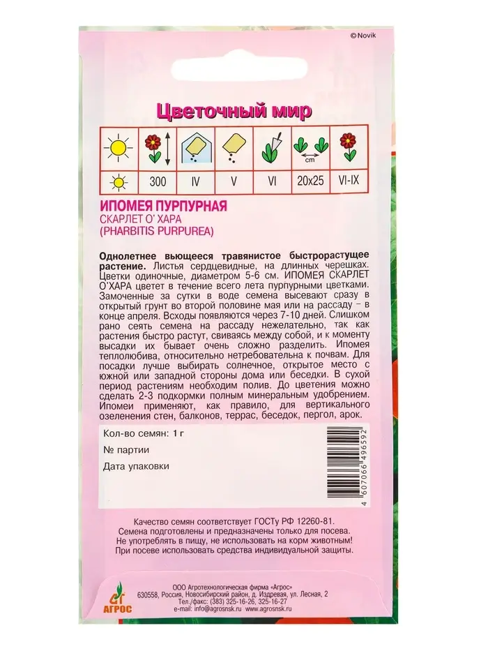Семена Ипомея пурпурная "Скарлет О`Хара" 1 г