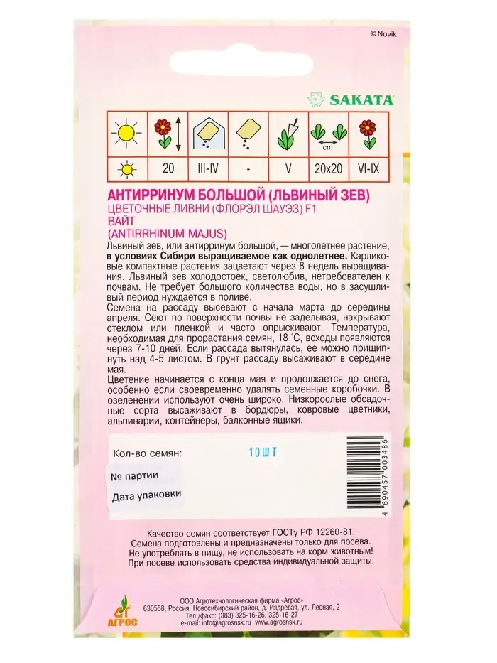 Семена Антиринум цветочные ливни F1 Вайт, 10 шт
