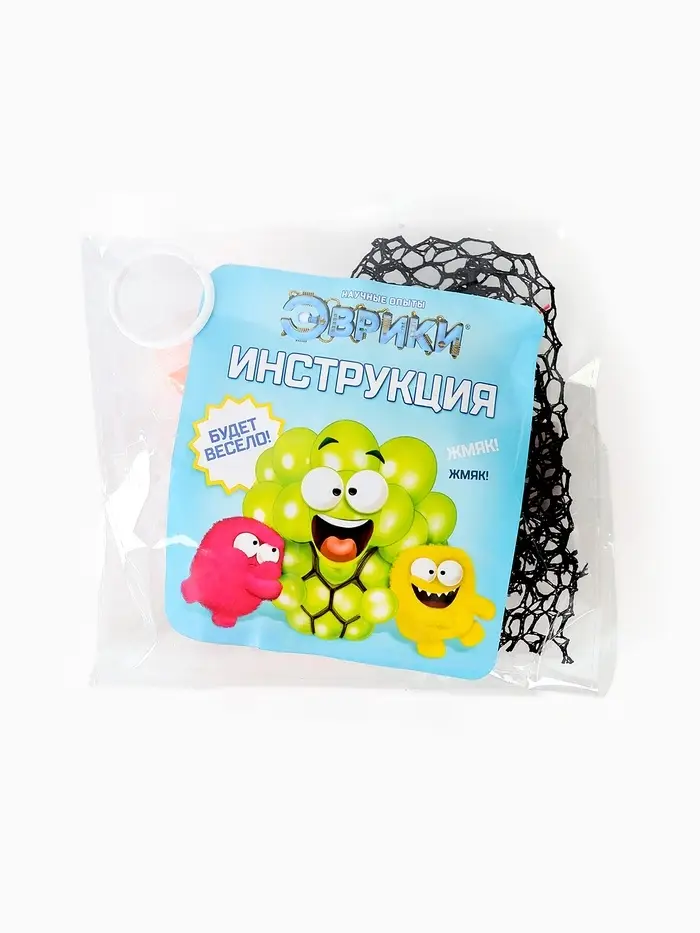 Набор для опытов «Мялка в сетке» позволит ребёнку провести увлекательный эксперимент по химии и создать необычную игрушку-антистресс своими руками.
