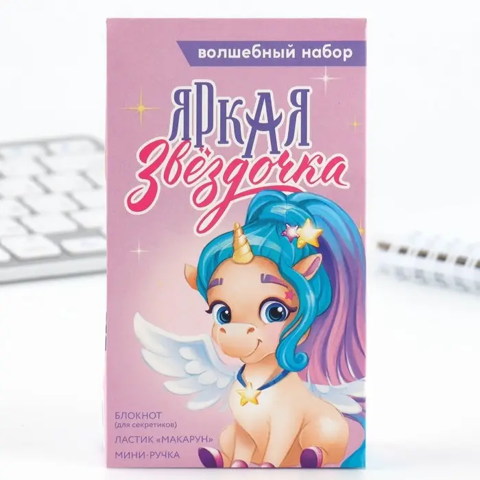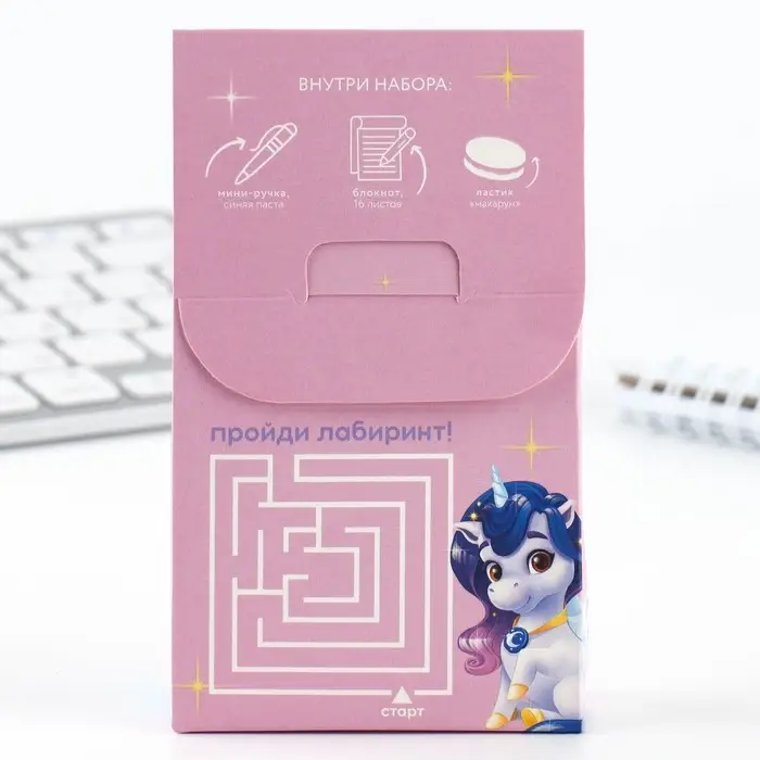 Подарочный набор, блокнот, ручка и ластик «Единорог»