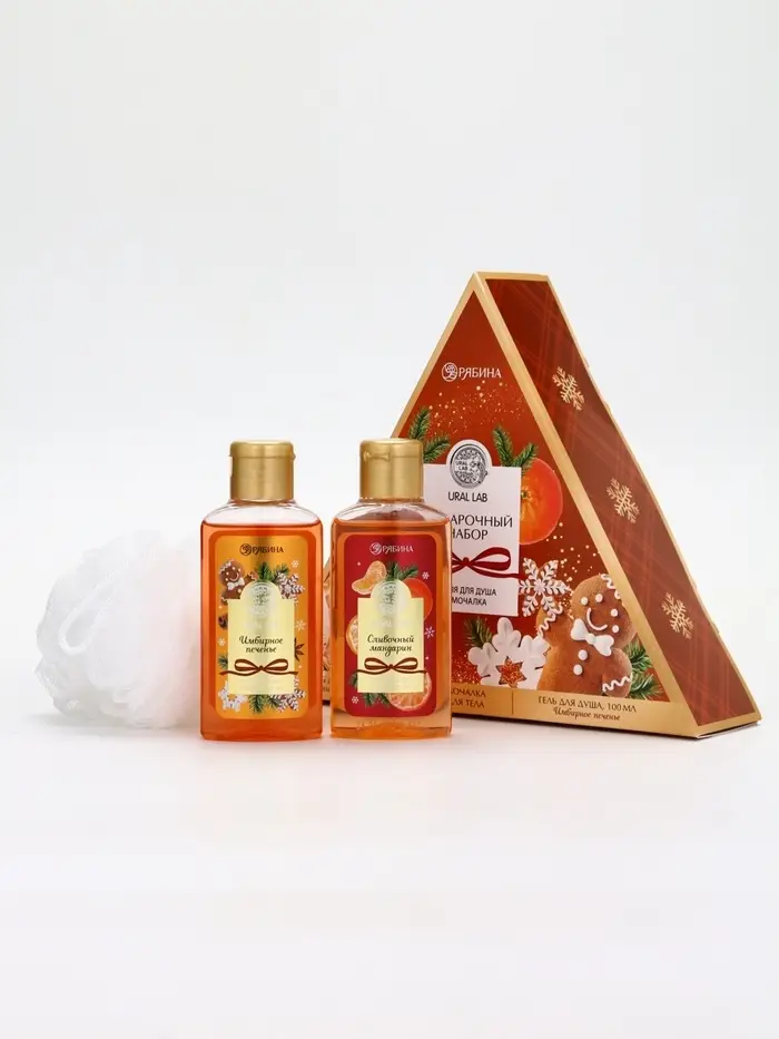 URAL LAB Арома Саунд Набор два геля для душа, 2х100 и мочалка для тела, мандарин и тыква