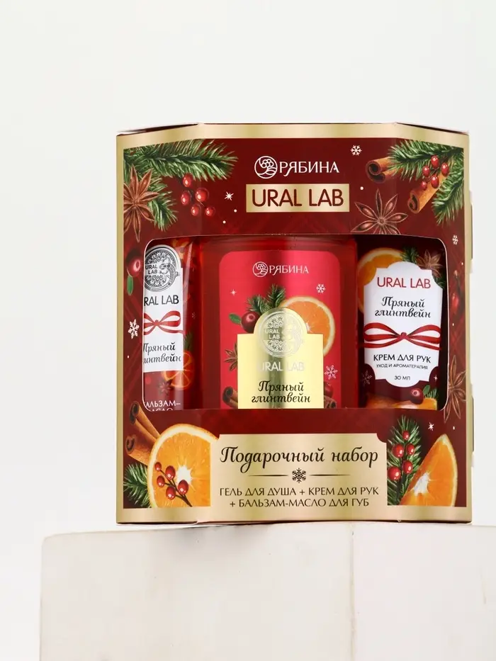 URAL LAB Арома Саунд Набор гель для душа, крем для рук и бальзам для губ, глинтвейн
