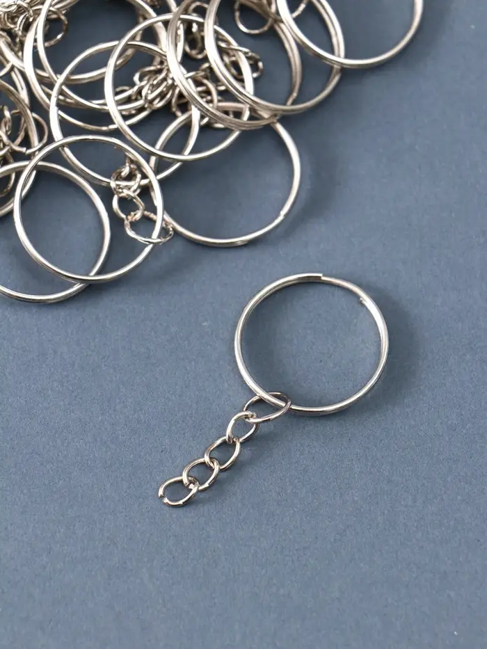 Основа для брелока кольцо металл с цепочкой серебро набор 50 шт 2,4х2,4 см