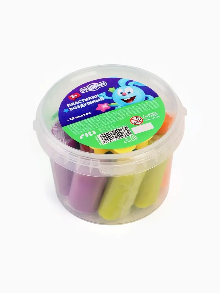 Воздушный пластилин,12 цветов, 30 г, в ведерке, Смешарики
