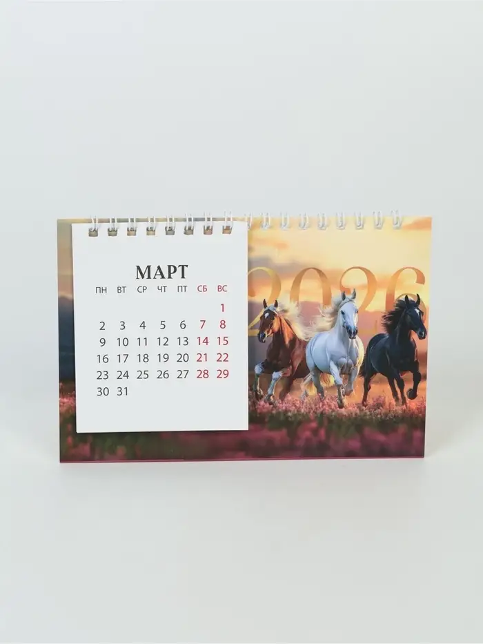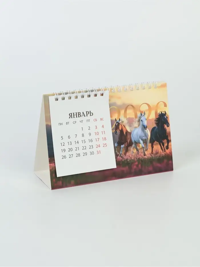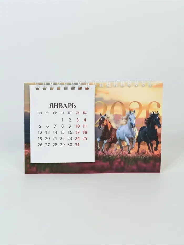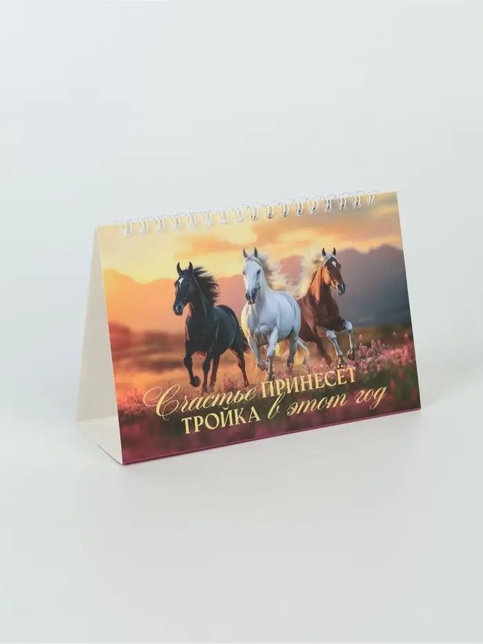 Календарь 2026 домик с перекидным блоком «Тройка лошадей»
