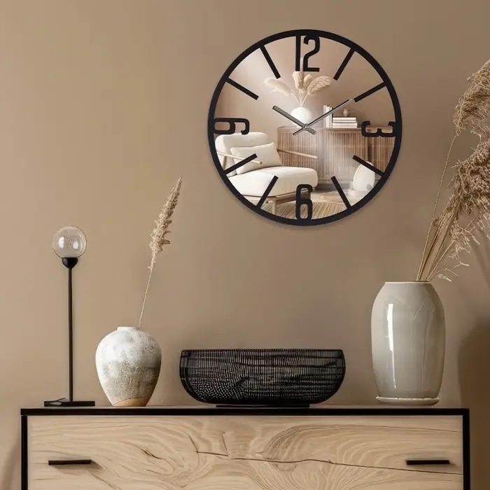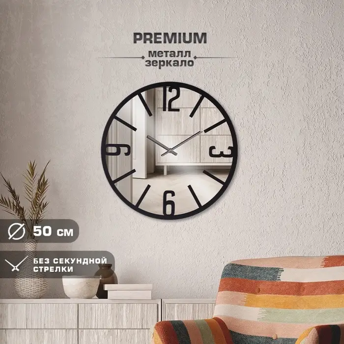 Часы настенные, интерьерные, бесшумные, d-50 см, зеркало, черные