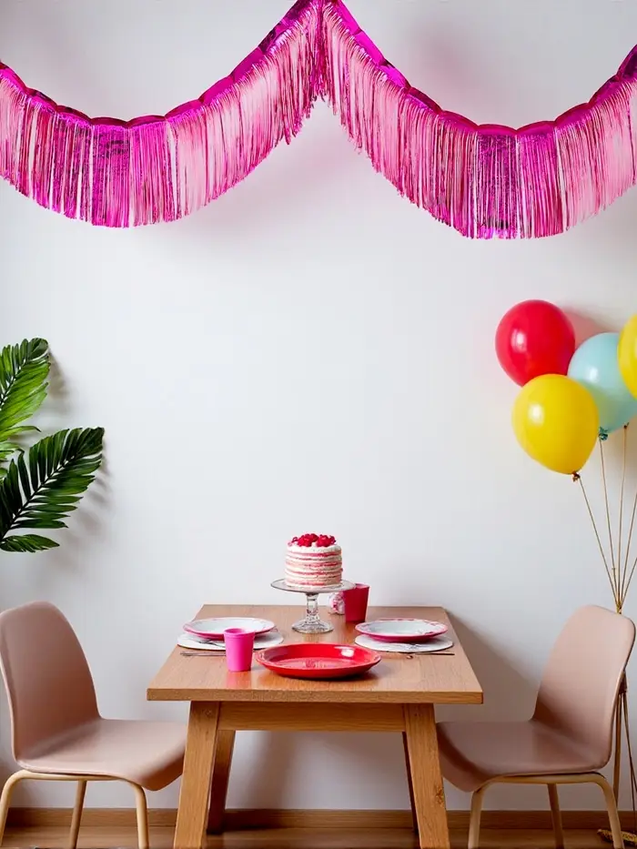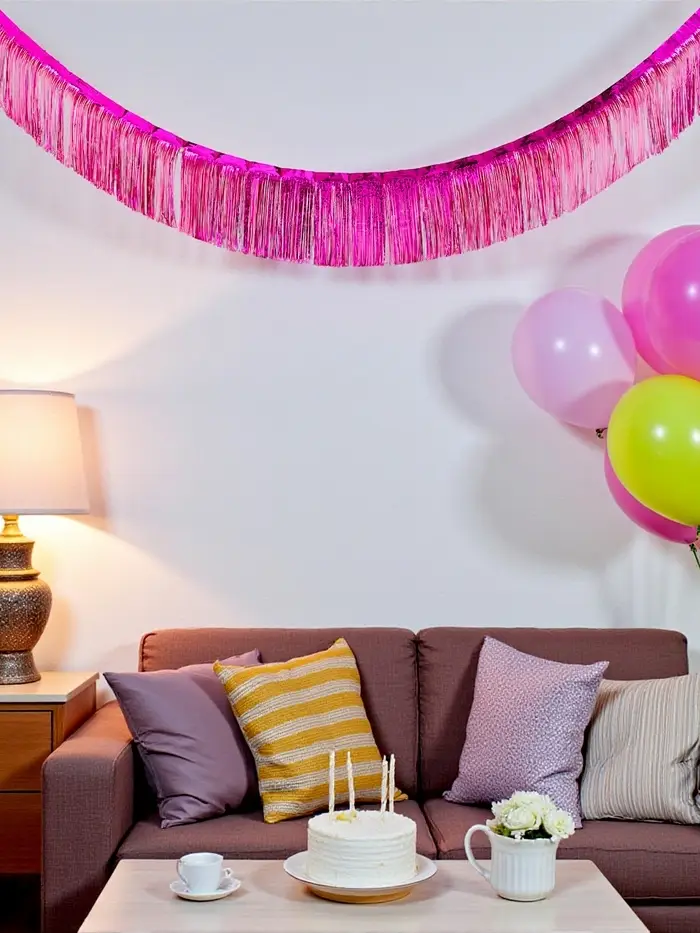 Гирлянда "Дождик" 3 метра с липким краем, цвет фуксия