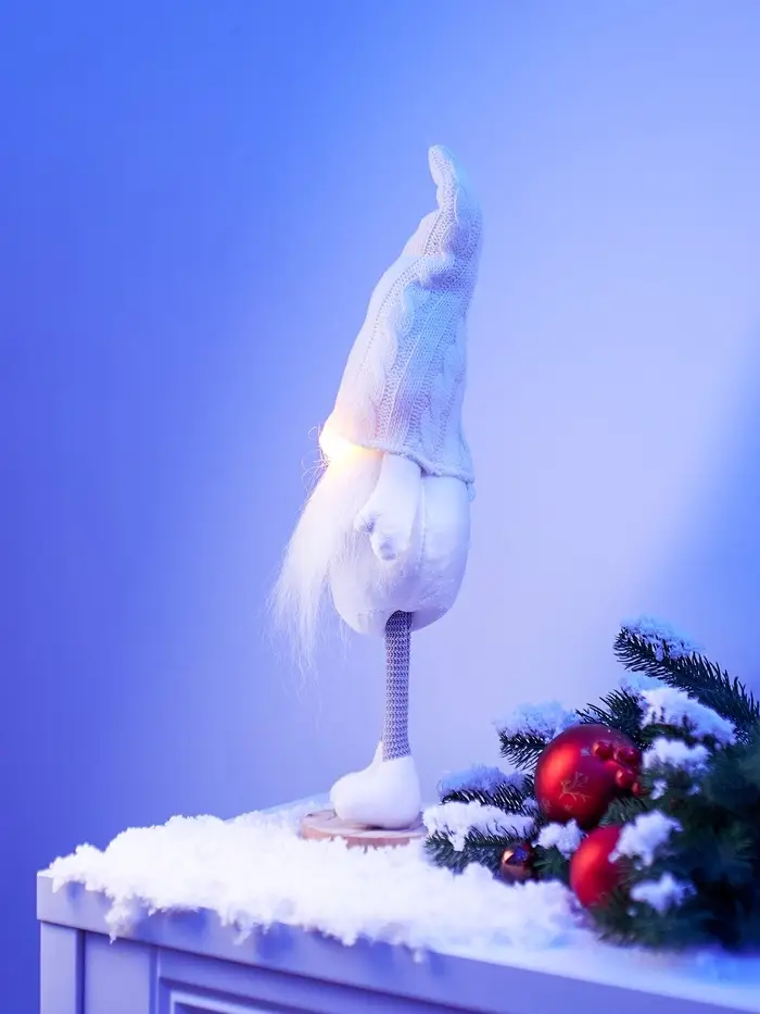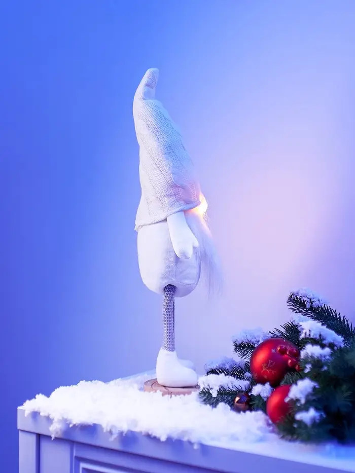 Фигура текстиль «Гном в белом» 55 см, 1 LED, от батареек AG13×3, свечение тёплое белое